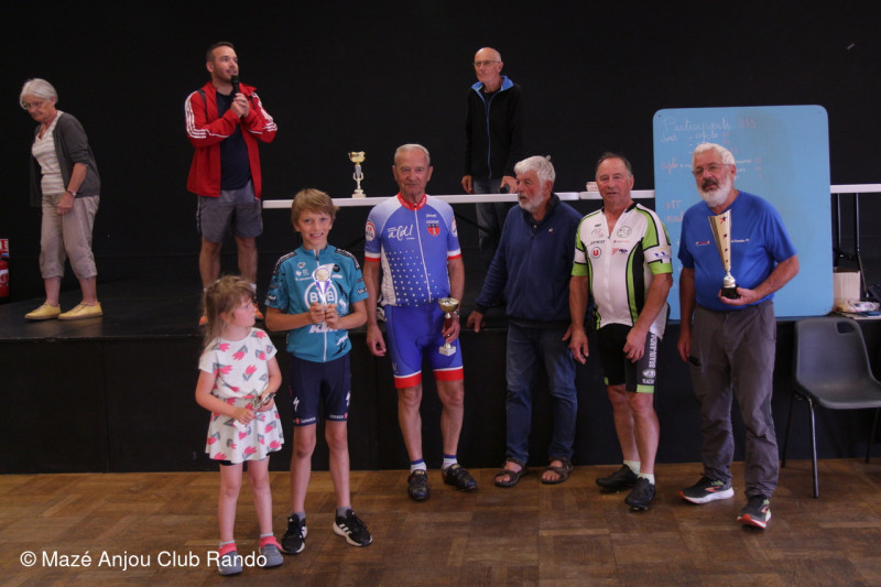 Le club de Brain-Andard a remporté le challenge Claude Valdois, club avec le plus grand nombre de cyclos routiers. Bonne représentation des cyclos des Rosiers ainsi que des marcheurs de Beaufort Rando et des RVA Beaufort. 92 ans d'écart entre la plus jeune cyclote, Océane 5 ans, et le fidèle Raymond Chevalier de Baugé !