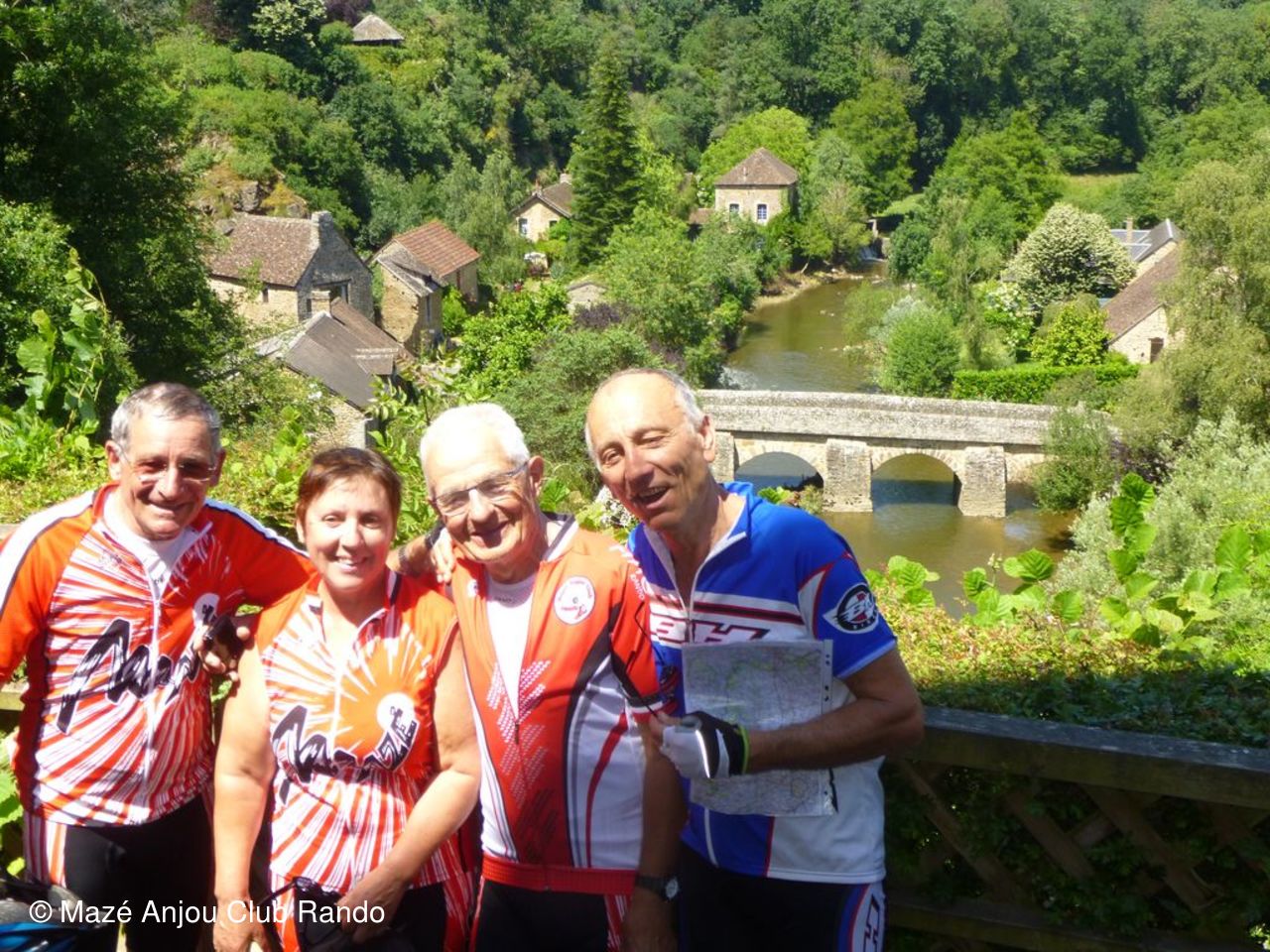 26 juin - L'après-midi, à Asnières-sur-Vègre : devant le pont